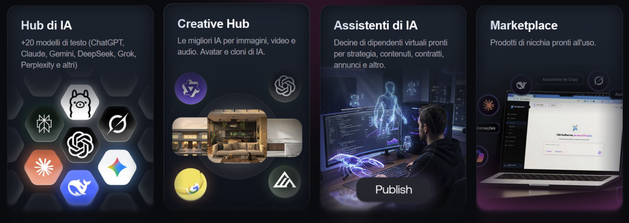 – assistenti e agenti di IA che ti aiutano a svolgere compiti reali (contenuti, automazioni, analisi, ecc.)